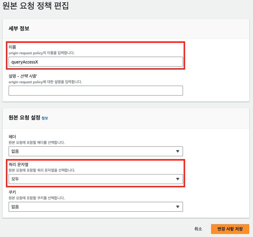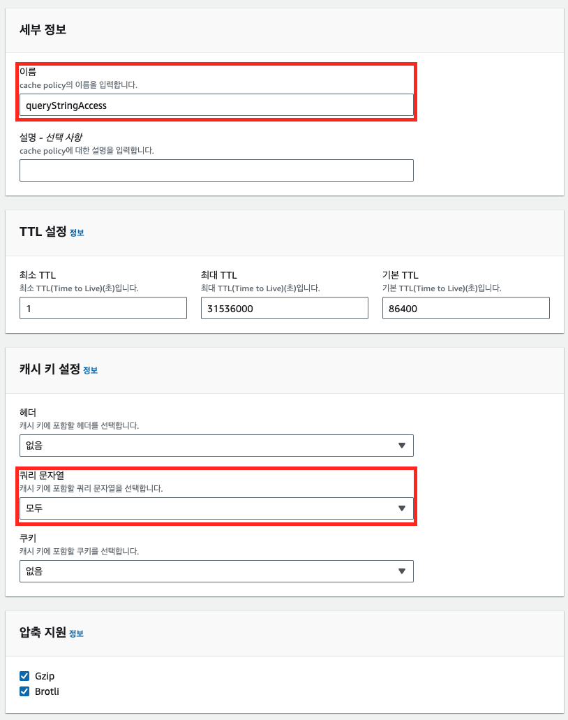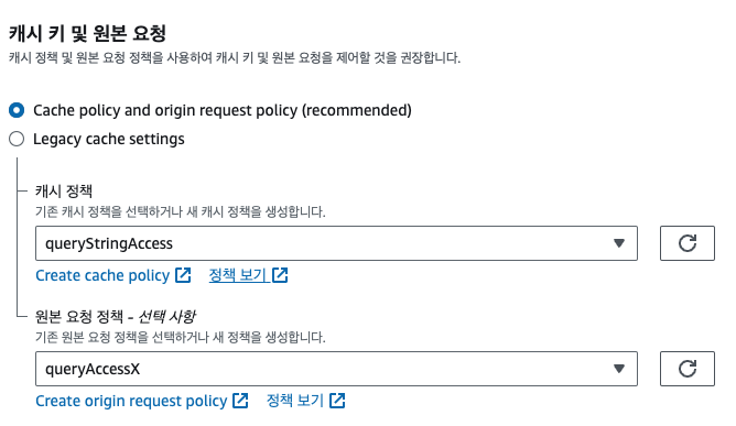 2. Cloudfront 동작에 queryString을 받을 수 있게 한다.